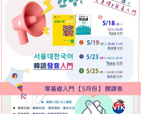 Korean2026-04-15 12:05:162026-04-15 12:08:39[5月]發音入門班,開放預約